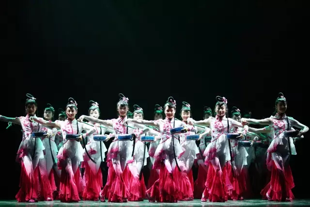 鼓舞声花:江南少女的俏丽与花的绽放在舞蹈里相互结合,用阵阵鼓声与舞动的姑娘来表达出江南的秀美。