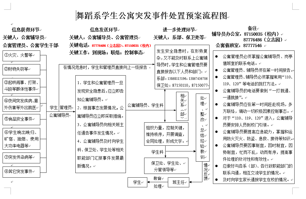 舞蹈系学生公寓突发事件处置预案流程图