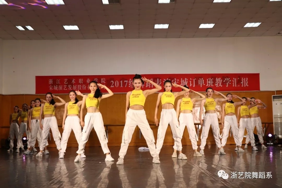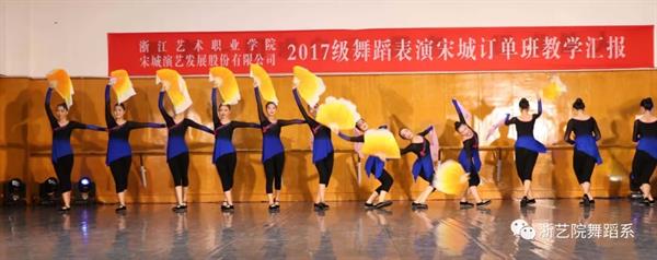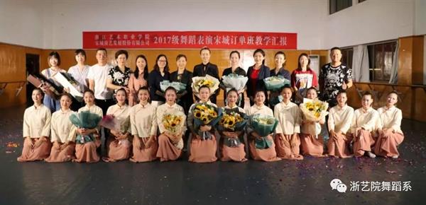 为庆祝17宋城班顺利结业,2019年 6月19日,我系在4409排练厅为17宋城班精心准备了一场毕教学成果展示。浙江艺术职业学院院长黄杭娟出席,舞蹈系主任张星、副主任曹亮红、舞蹈系党总支专职副书记马笑迎、舞蹈系组织员陈英参加。作为合作培养方,此次活动还特地邀请宋城演艺集团领导王玲飞、阙梦野一同参加并观看同学们的教学成果展示。