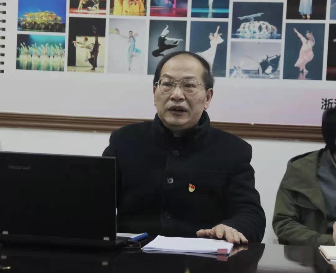 12月22日,浙江艺术职业学院党委委员、副院长章轲来舞蹈系宣讲党的十九届五中全会精神和省委十四届八次全体(扩大)会议精神,舞蹈系和科研处教职工一起集中学习。