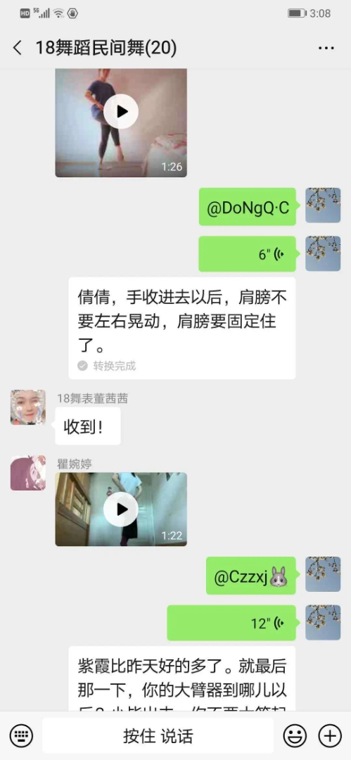 部分难点部位的动作要点,教师们通过“视频+讲解”方式,将授课内容录制成为微视频通过微信、QQ和云班App发送、上传给学生,方便学生反复观看并重点学习。