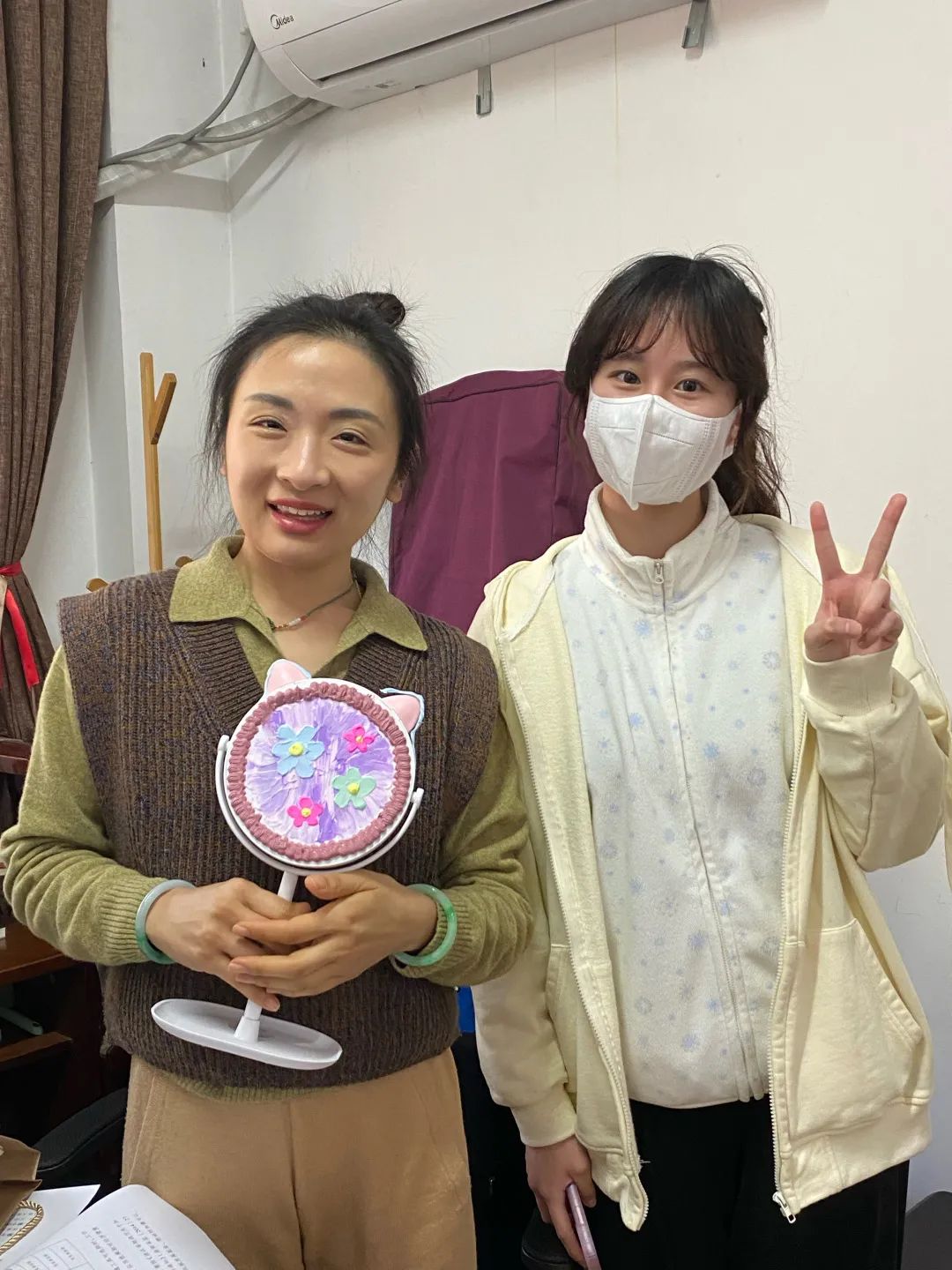 为了这一天,在舞蹈学院团总支学生会的组织下,舞蹈学院的同学们个个心灵手巧,在周末课余时间,亲手用奶油胶DI等材料制作了一面面独一无二的精致化妆镜,准备在节日当天送给这一位位独一无二的美丽女神!