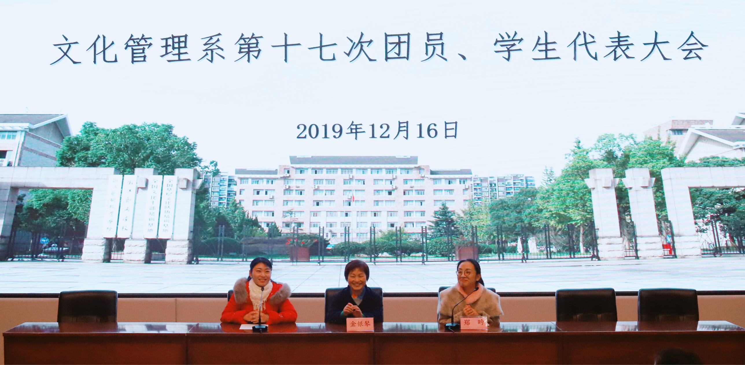 12月16日晚,浙江艺术职业学院文化管理系第十七次团员、学生代表大会在图信中心报告厅举行。校团委书记郑吟、文化管理系党总支书记金银琴、全系辅导员出席本次大会。大会由文化管理系团总支书记宋煜主持,全系103名团员、学生代表参加此次会议。