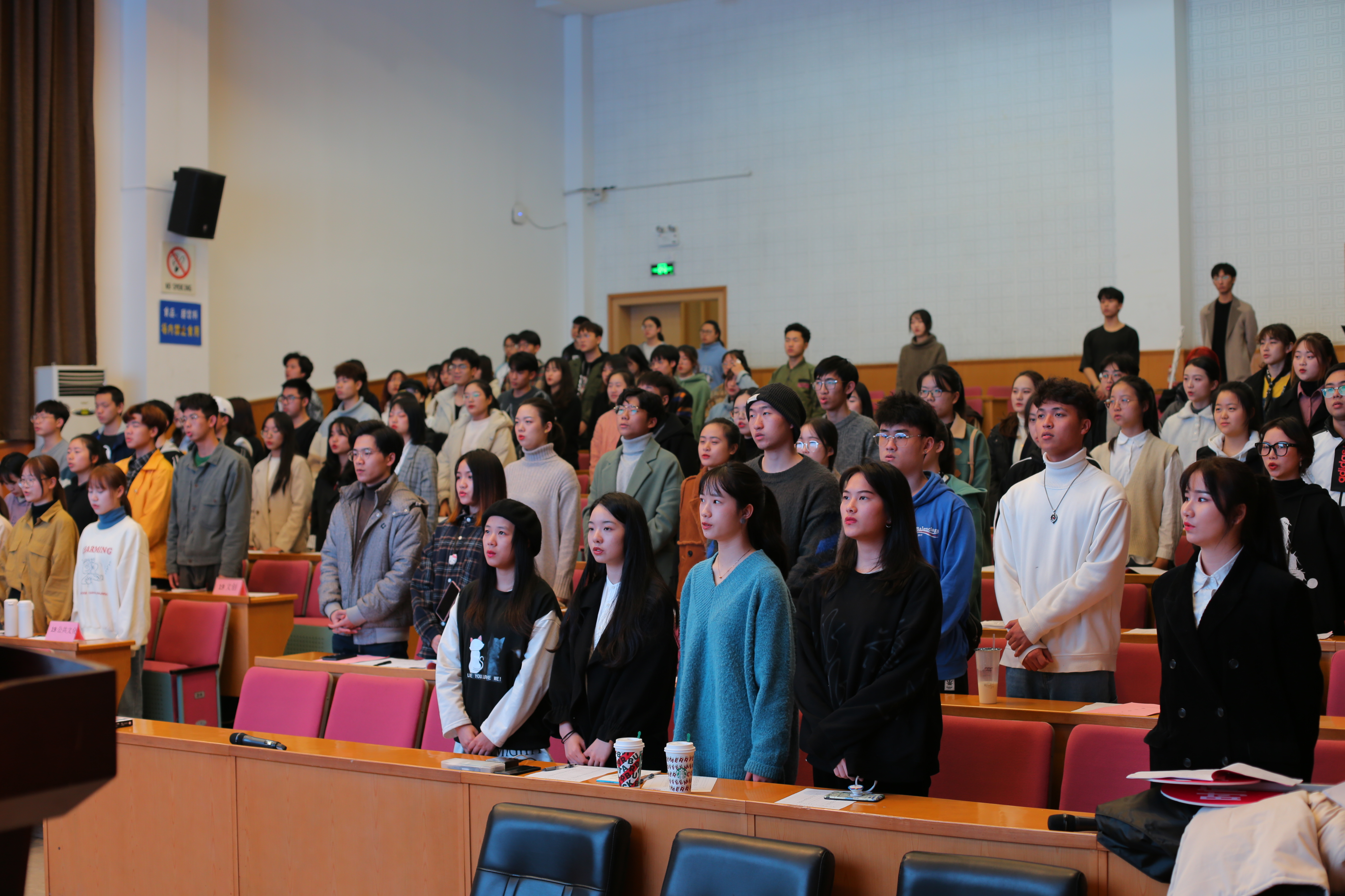 最后,金银琴宣读了大会选举产生的25位文化管理系第十七届团学委员会委员名单。随着铿锵激昂的团歌声,大会顺利闭幕。文化管理系第十六届、十七届团学合影留念。