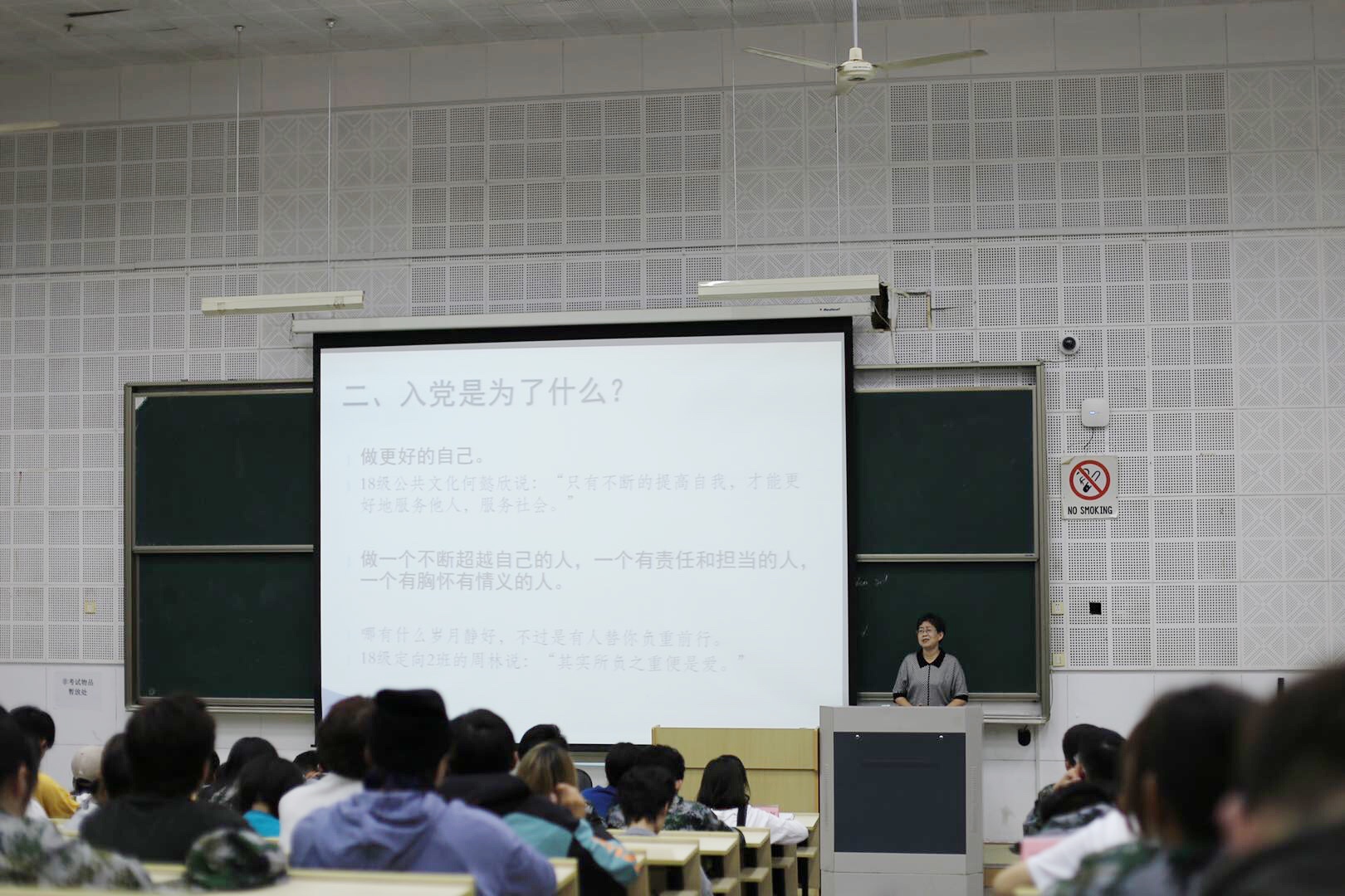 系党总支组织员钱杏芬通过展示校友事迹,引导同学们想象未来的自己,继而引发对现在的自己该怎么做的思考。她介绍了入党的相关条件,鼓励同学们积极入党,成为一个有责任有担当、有胸怀有情义的人,不断超越自己,做更好的自己。入党要从现在开始,从身边做起,从小事入手。最后她亲切地邀请各位新同学有空去办公室坐坐聊聊,谈谈梦想,聊聊人生。