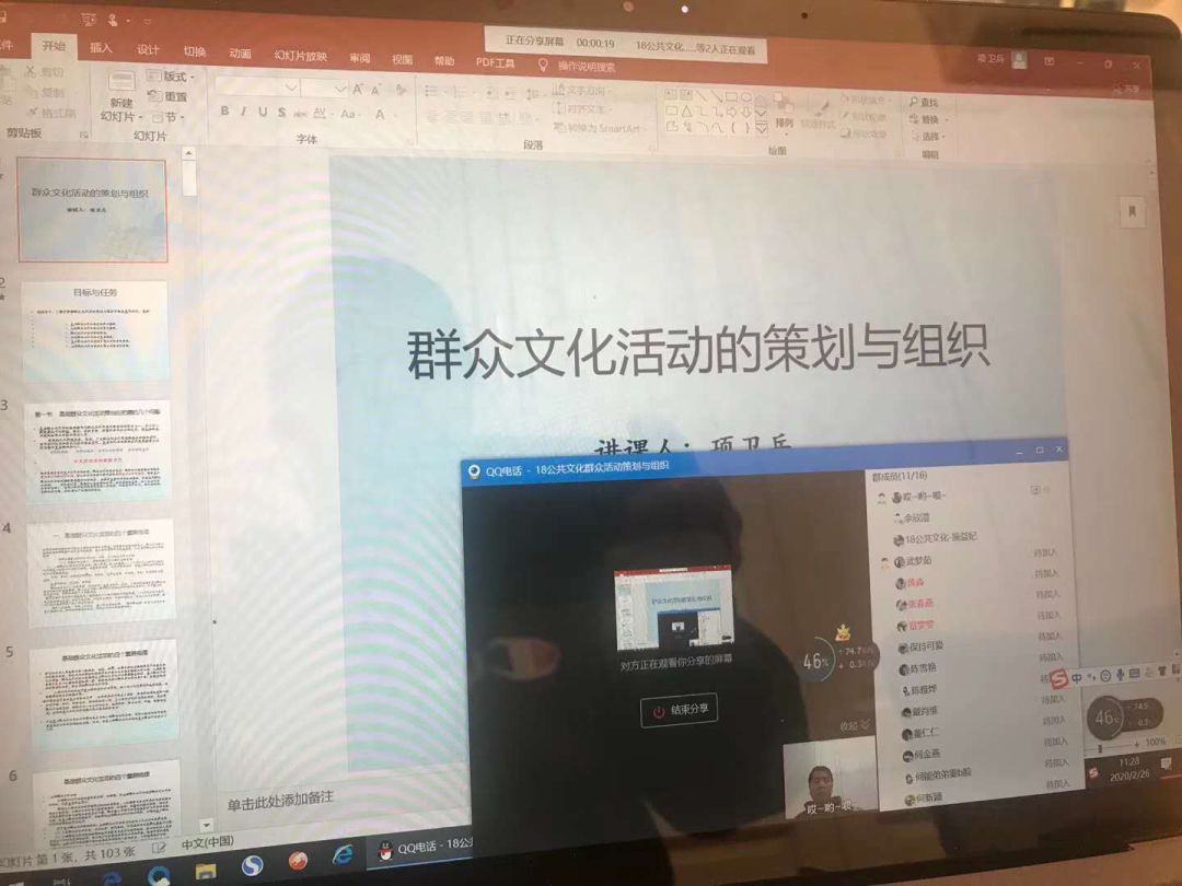 为严格贯彻教育部、省教育厅关于疫情防控期间组织与管理的工作部署,落实学校《关于在新冠肺炎疫情防控期间开展线上教学的通知》要求,最大限度地减少新型冠状病毒感染的肺炎疫情对正常教育教学秩序的影响,实现学生“离校不离教、停课不停学”目标,文化管理系教师们结合学校要求,用自己的实际行动紧密配合开展云教学。师生戮力同心,众志成城,用对知识的坚守与渴望共筑战胜疫情的必胜决心。
