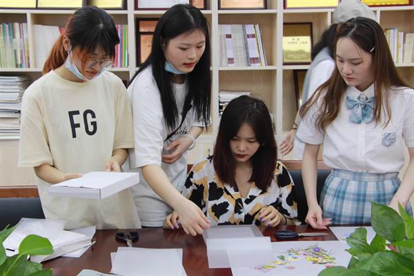 文化管理系展示艺术设计教研室黄茜老师对在场体验的师生进行一对一指导和示范,鼓励同学们发挥自己的想象力,大胆创新,用自己的奇思妙想将一个个植物标本拼贴成一幅独具特色的画。