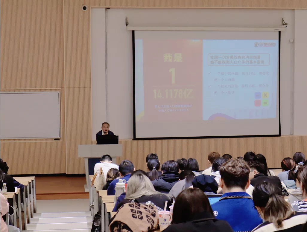 齐磊开讲主题为“正确认识我国的人口问题”的形势政策课。2020年我国第七次人口普查显示我国人口已突破14亿。习近平总书记指出:“我国是世界上人口最多的国家,人口问题始终是全局性战略性问题。”对此,齐磊从人口问题系全局、人口发展新特点、人口形势辩证看三大方面深入分析了我国人口问题形势。从我国人口总量的历史变革、人口红利变化、生育政策的调整等方面,阐述了人口问题对于民生的重要性、我国现如今的人口问题以及应对政策。