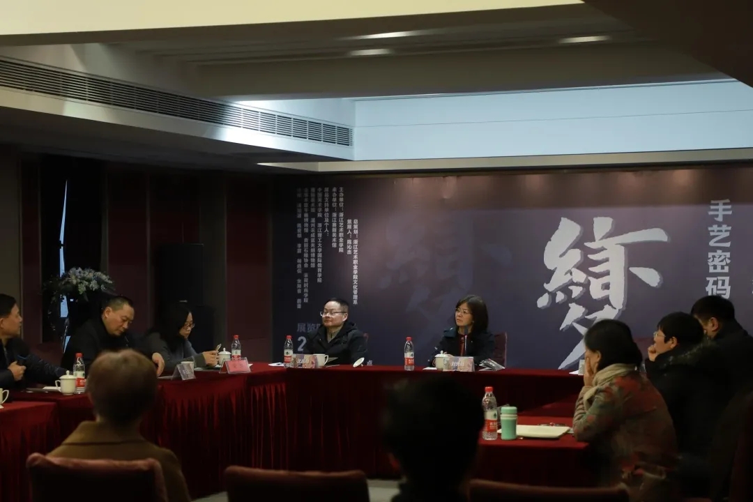 观展过后,“手艺之变”主题学术研讨会相继举行。研讨会邀请了中国古陶瓷学会副会长、复旦大学二级教授、博士生导师沈岳明,国家非物质文化遗产评审专家、浙江师范大学二级教授陈华文、中国丝绸博物馆技术部主任、中国纺织品鉴定保护中心副主任、研究馆员汪自强,中国美术学院手工艺术学院书记、副院长李玉普,中国美术学院影视动画学院书记、副院长王其全,浙江省工艺美术大师、浙江省文化馆民间艺术研究中心研究馆员余知音,中国美术学院绘画艺术学院紫竹斋负责人、版画系副主任王超,中国美术学院设计博物馆研究部主任张春艳、浙江工业大学人文学院教授王姝和浙江日报全媒体评论理论部主任助理吴晔等。