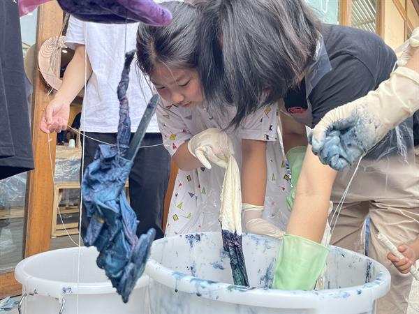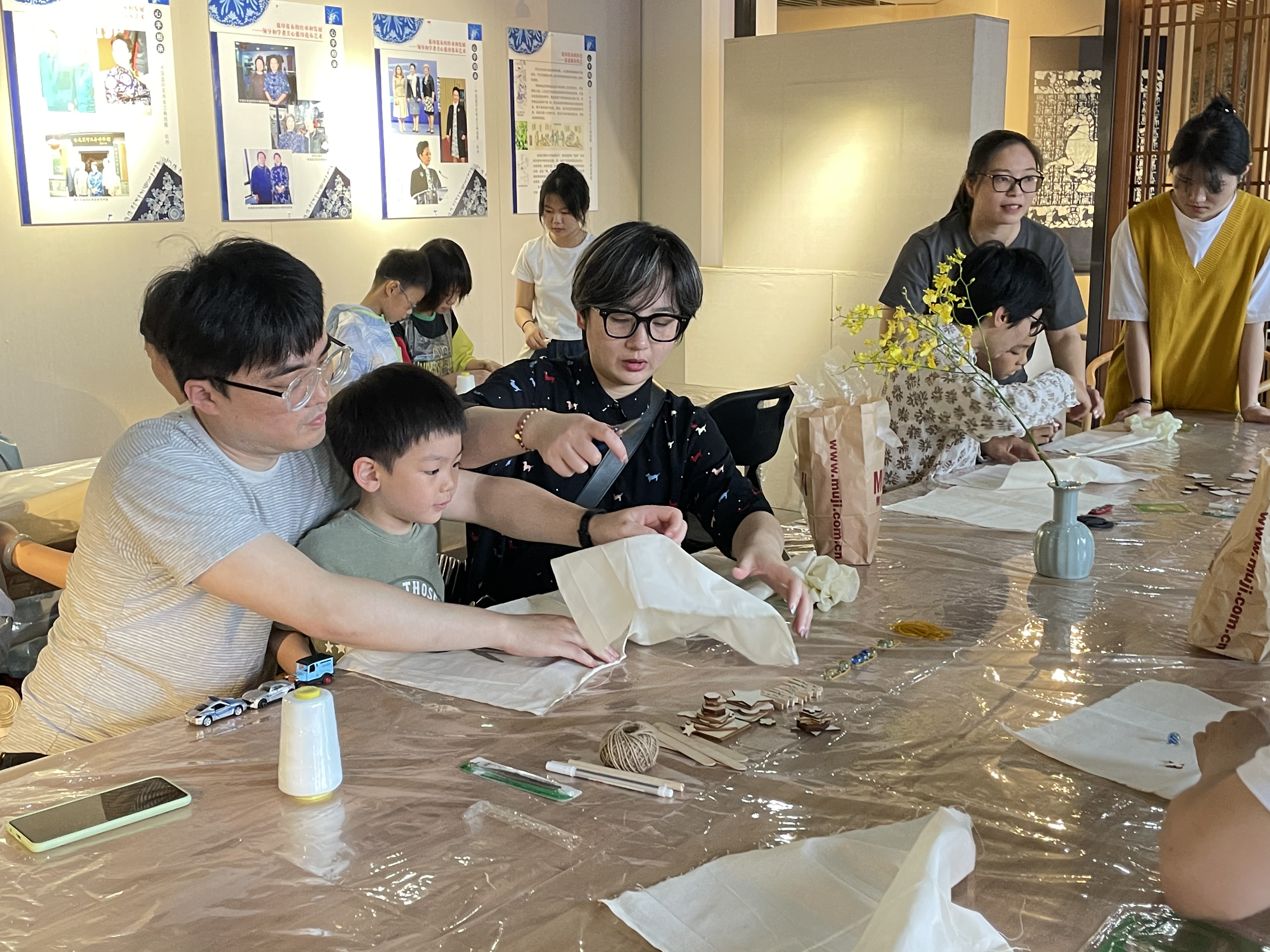 近距离体验非遗——中国蓝印花布长三角巡展(杭州站)举办扎染亲子体验