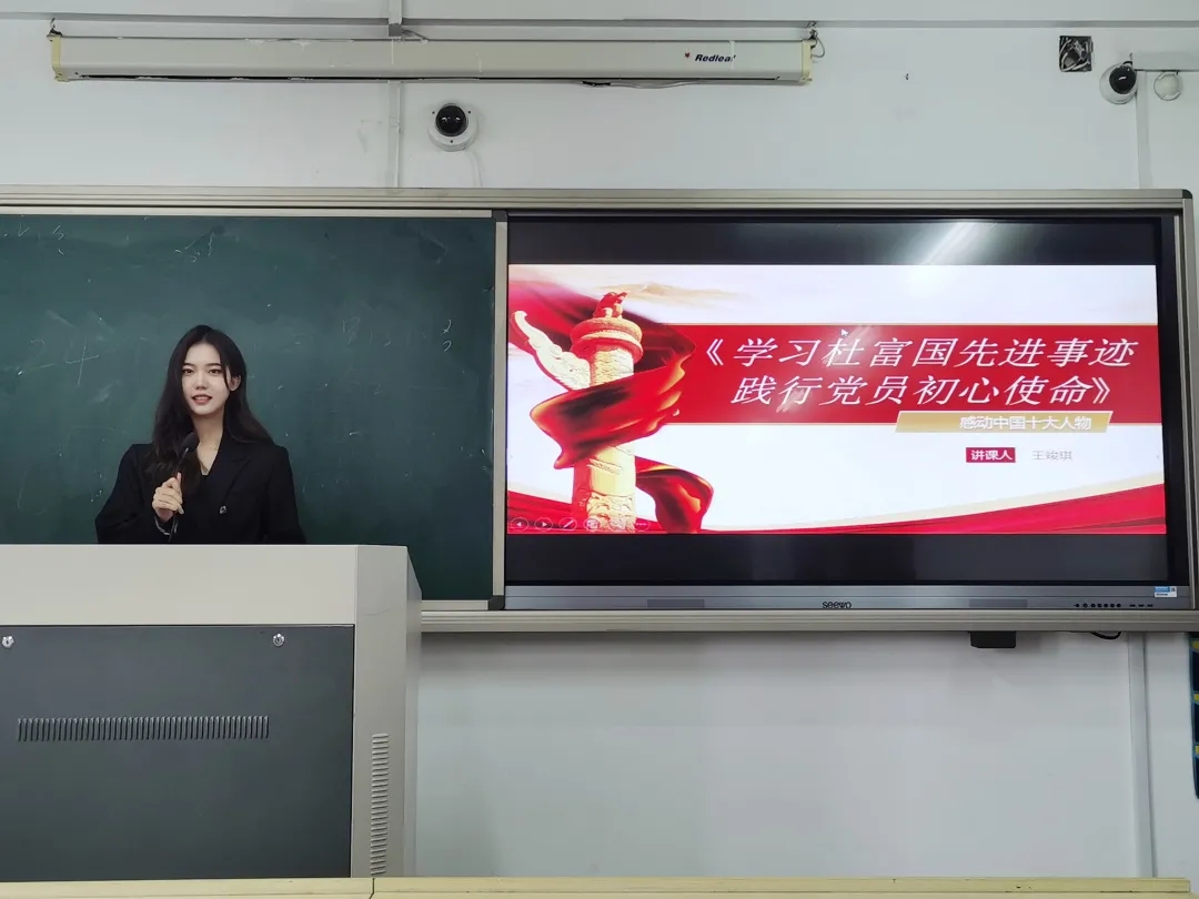19定向2班王竣琪以“学习杜富国先进事迹 践行党员初心使命”为主题,带我们走进排雷英雄杜富国的先进事迹。带大家一起学习了杜富国同志精神,践行初心使命。她表示,每个人均有自己的初心,应该坚守自己的初心并身体力行。作为未来的乡镇文化员,要在自己的岗位上不忘初心,敬业奉献,发光发热,为文化惠民助一臂之力。