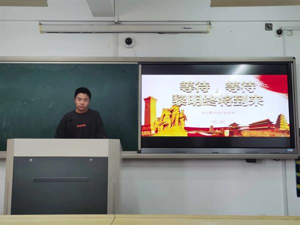 20定向2班姜歌通过“等待,等待,黎明就要到来”为主题,从《致林维雁》这首诗为切入点,声情并茂地讲述了身为女儿身的林维雁为衢州解放而牺牲。正是共产党人的血肉与生命,换来了我们的美好生活。作为未来的乡镇文化员,他指出,要向烈士学习敢作敢为、敢想敢拼敢吃苦的精神,为基层文化献出自己的绵薄之力,振兴家乡文化。