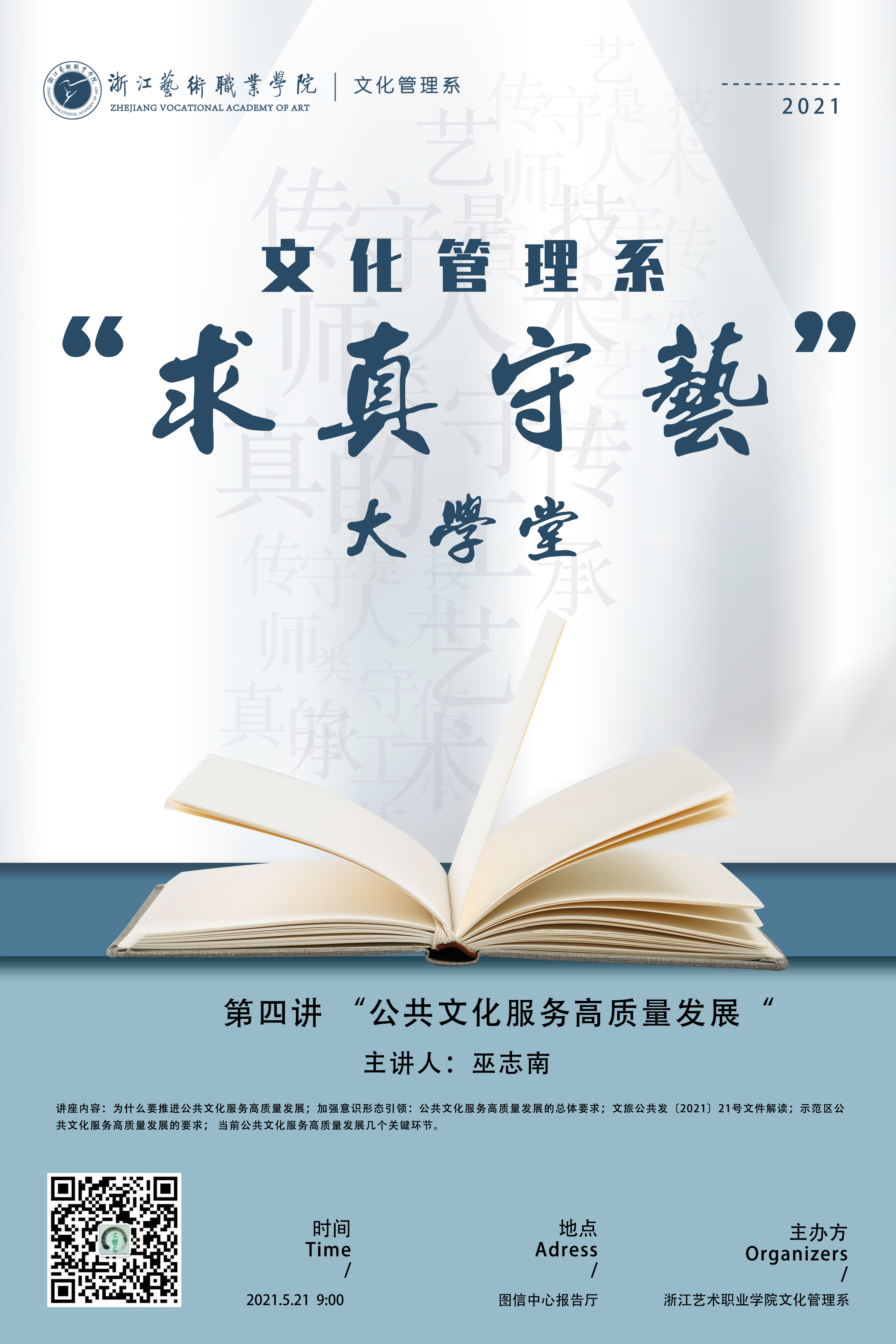 文化管理系“求真守艺”大学堂第四讲来啦!这次来的是哪位大咖?让我们一起先睹为快吧~~