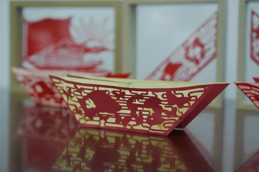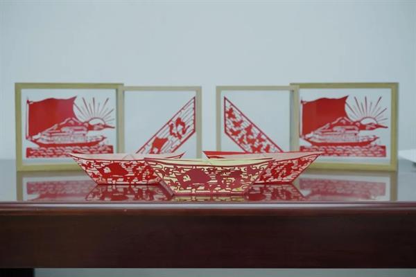 此次剪纸体验活动结合建党百年主题,秉乘着喜迎建党百年,弘扬传统手工技艺,培育和传承工匠精神,孙艺萌老师带领团队特别做了红船主题剪纸折纸。