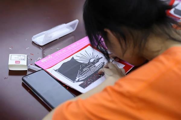 20展示的陈威伊说,这次剪纸的体验给我的印象挺深的。恰好值建党百年,这次的剪纸活动也以此为主题,我们剪刻了红船,以此来表达对建党百年的祝福。这个过程并没有我们想象中的简单,所幸我们的努力得到了回报,这也让我想到了当初建党的艰难,而所幸,中国革命的面貌终是焕然一新——我们终是迎来中华民族伟大复兴的光明前景。