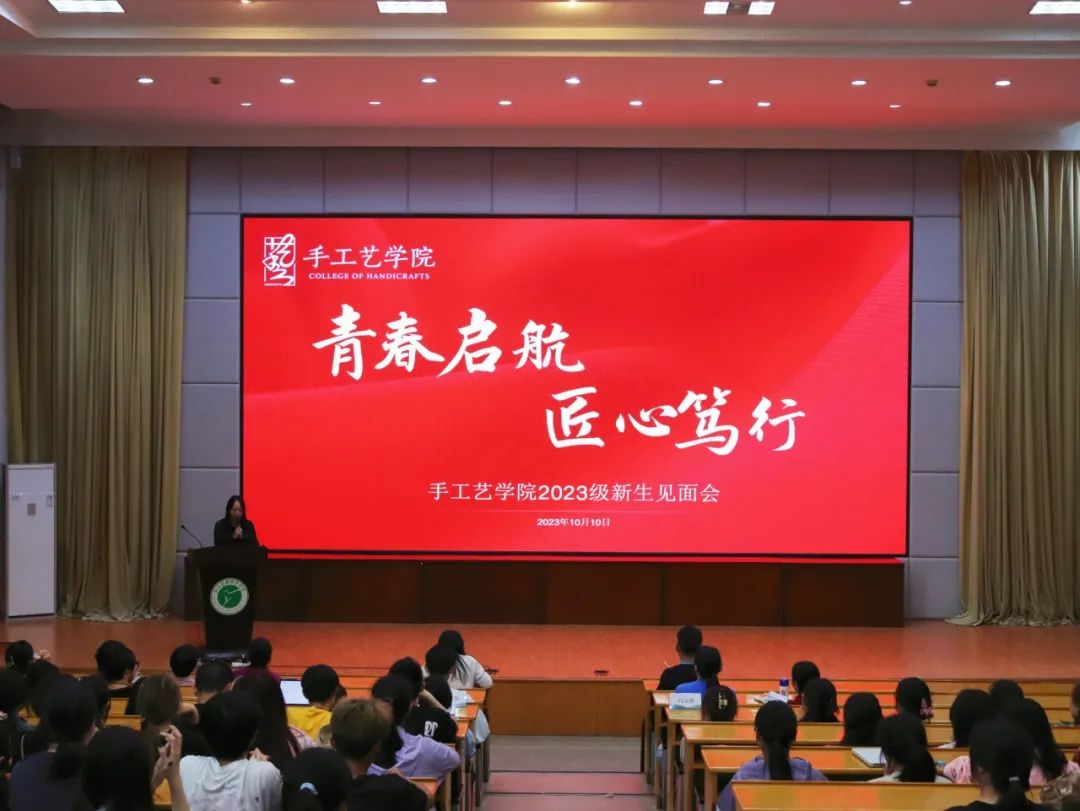 10月10日下午,为教育和引导2023级新生坚定理想信念,明确学业目标,科学规划大学生活,手工艺学院在图信报告厅开展2023级新生见面会和始业教育。