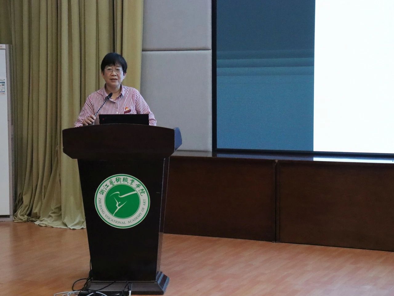 钱杏芬介绍了发展学生党员的具体流程,并通过优秀党员校友的事例,鼓励大家向优秀党员学习,争当负责任、有担当的手艺人,在新征程上传承星火、赓续血脉,让青春在不懈奋斗中绽放绚丽之花。