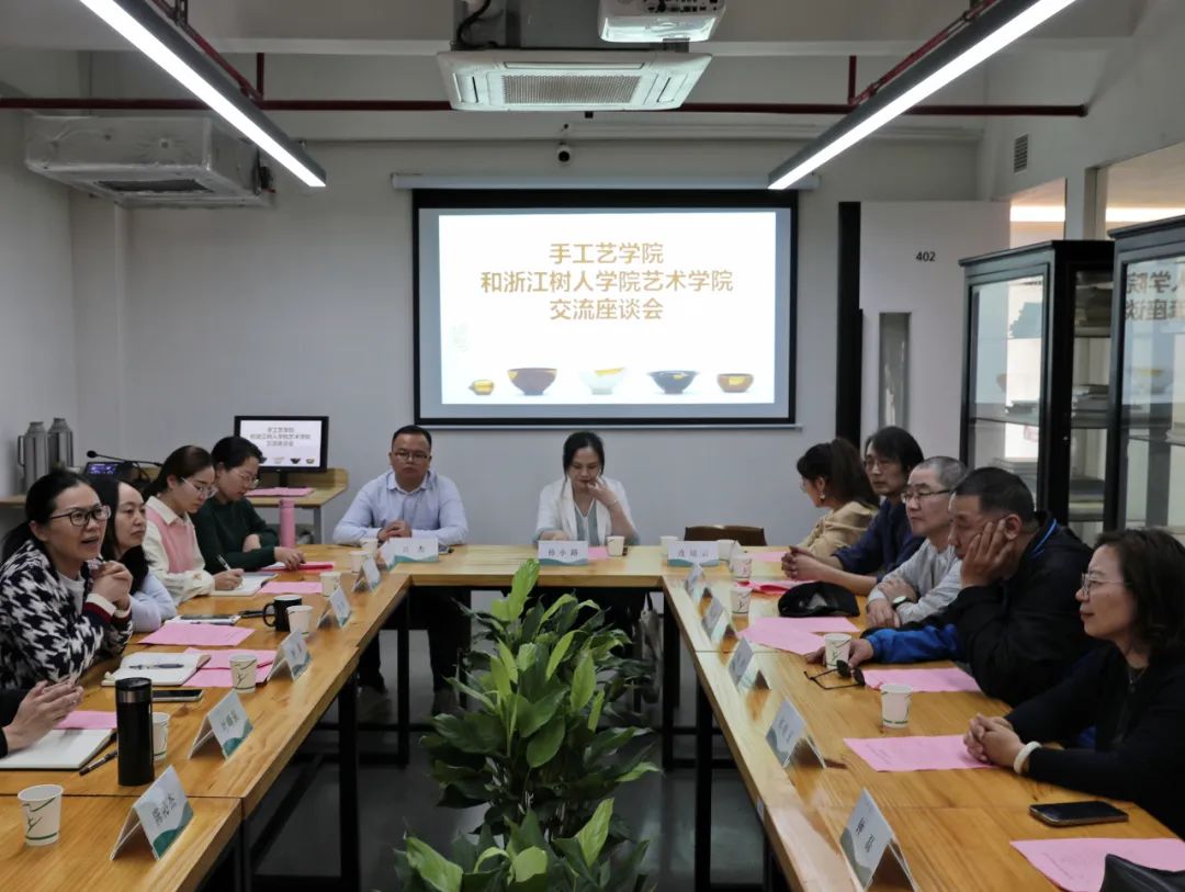 为加强校际交流合作,推进双方学科建设、人才培养和实践实训等学习互鉴,10月23日下午,浙江树人学院艺术学院院长赵燕一行来我院调研,手工艺学院领导班子进行了热情接待,各教研室骨干教师随行陪同。