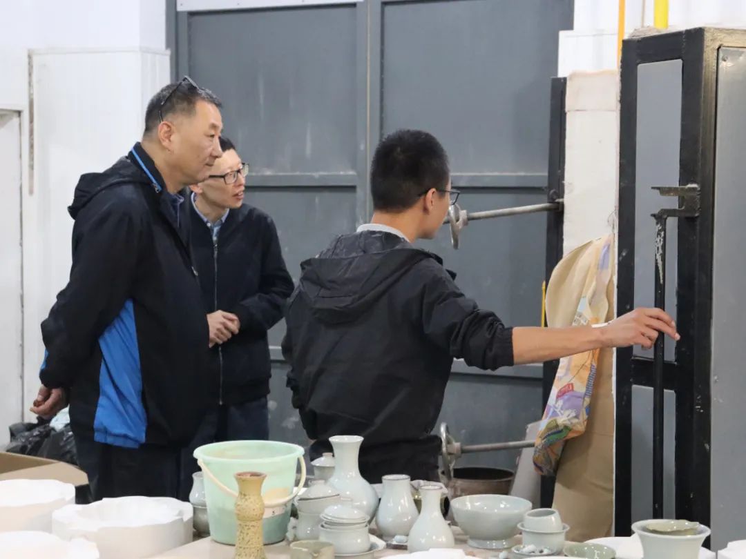 会后,赵燕院长一行继续参观了校本部文物修复实训室、陶艺实训室以及古籍修复实训室,进一步了解手工艺学院学科建设、人才培养和实践实训、教学内容设置等方面的情况。