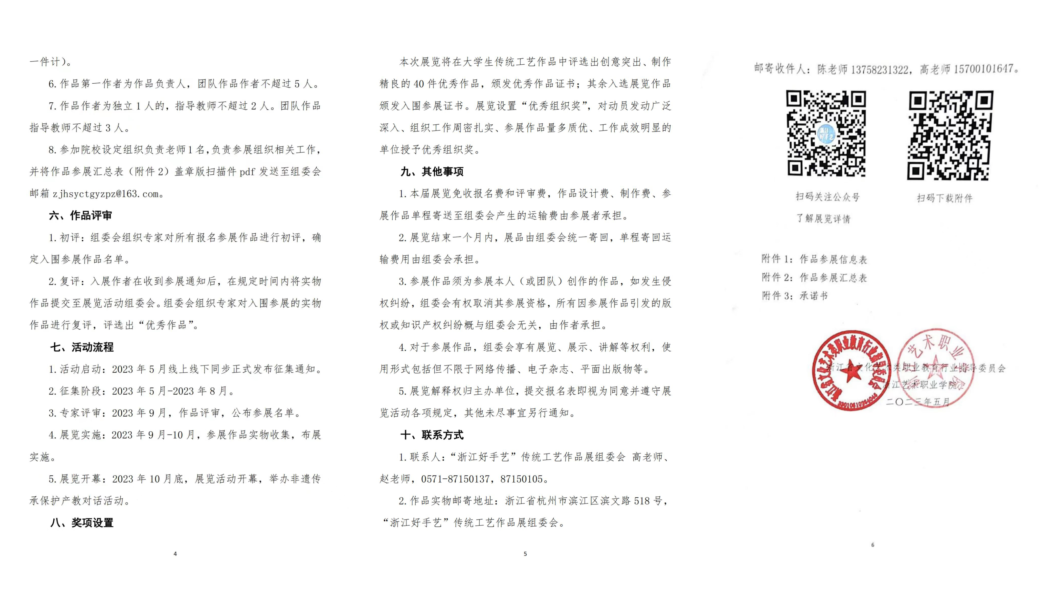 1.联系人:“浙江好手艺”传统工艺作品展组委会 高老师、赵老师,0571-87150137,87150105。