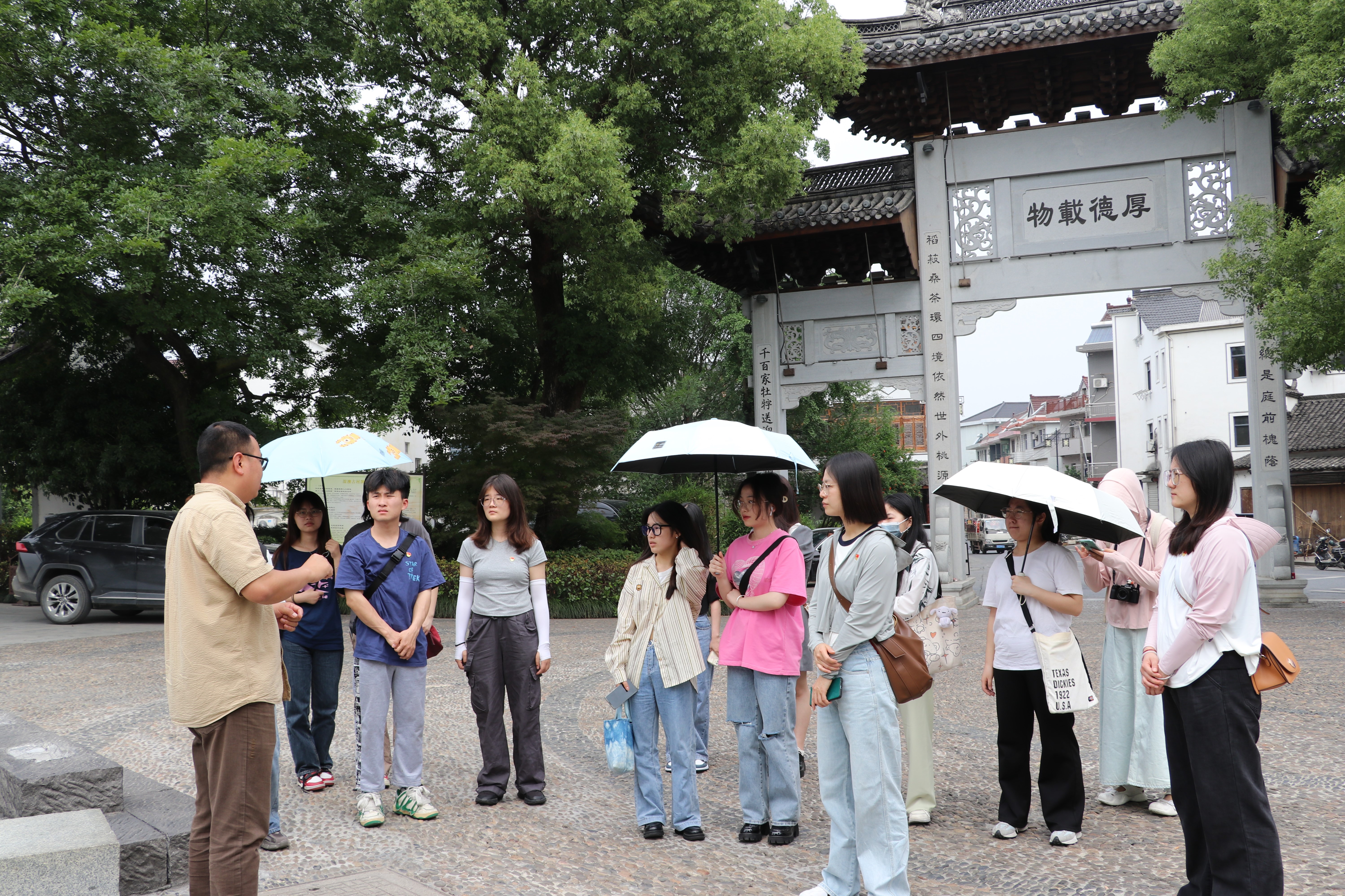 活动开始前,“深澳百匠艺术文化村项目”发起人宋凯带领同学们参观古村落,感受文化古村魅力。深澳古村是申屠家族的血缘村落,是桐庐一带的江南古村,因其庞大的古建筑群、独特的地下水系、深厚的宗族文化和浓郁的民俗风情而闻名。近年来,深澳村坚持以“明清古建筑群”为肌理,“地方民俗文化”为特色,“美丽田园风光”为底板,深度挖掘古村落资源,加快盘活闲置资产,突出“古风古韵”,着力打造“百匠创客街区”,探索资源转化富民之路,实现“村美”与“民富”的有机统一。