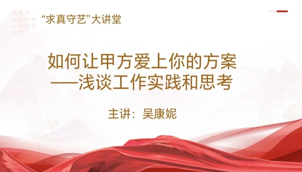 1月10日,手工艺学院开展“求真守艺”大讲堂第三十六讲专题讲座活动。本次讲座邀请了吴康妮老师带来一场题为《如何让甲方爱上你的方案———浅谈工作实践和思考》的精彩分享。