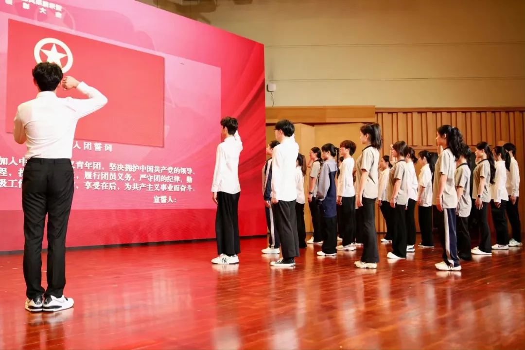 活动伊始,22文化创意与策划班曹瑞作为优秀团员代表领誓,23展示艺术设计班罗美玲和23文物修复与保护班李泓达作为手工艺学院新团员代表上台宣誓。