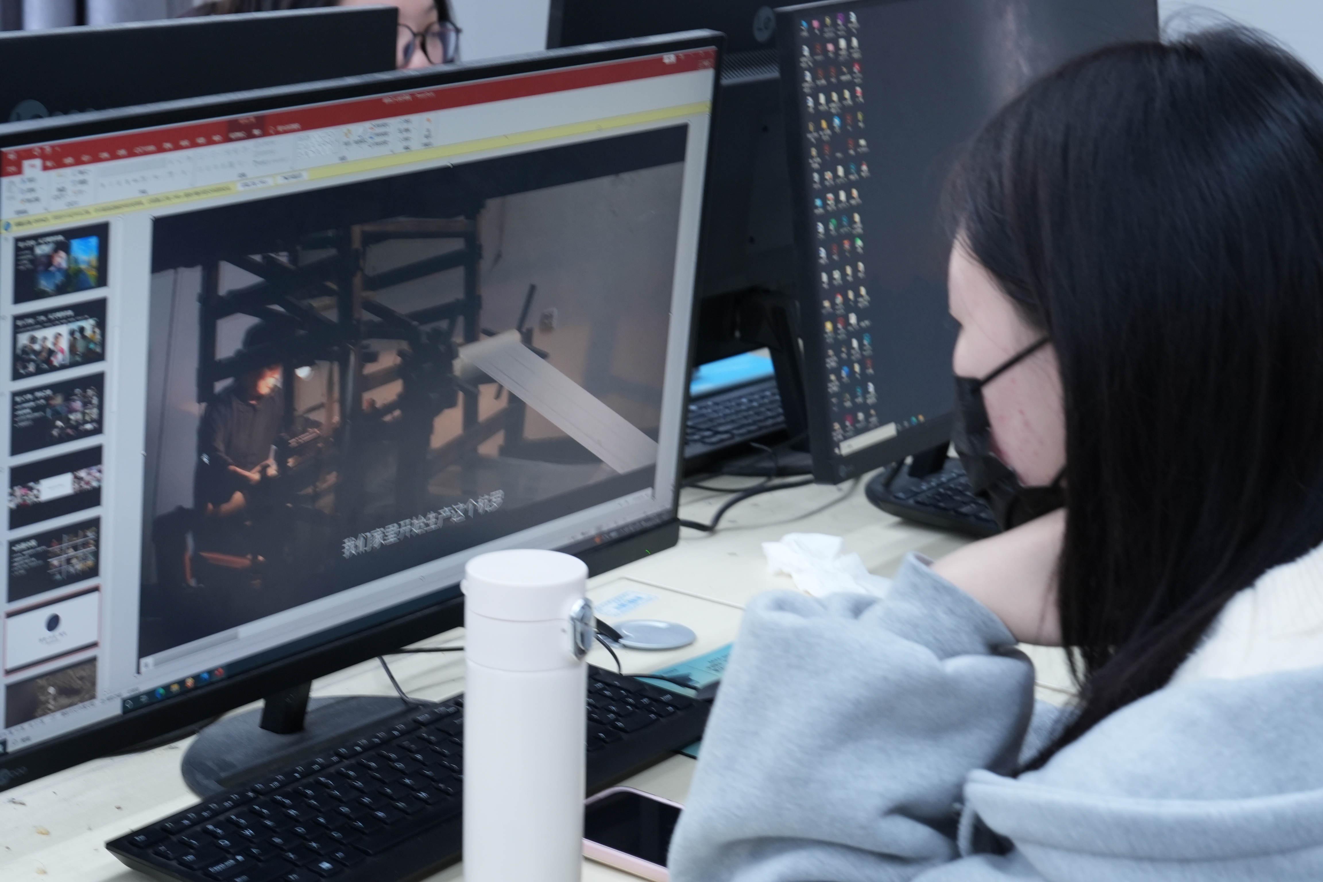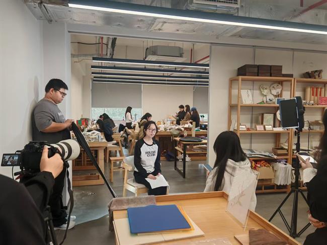 在基本了解和掌握上述知识点后,徐飞及短视频创作课程教师林瑾,带领部分同学前往民族传统技艺“水印木刻”课堂进行上机实拍。