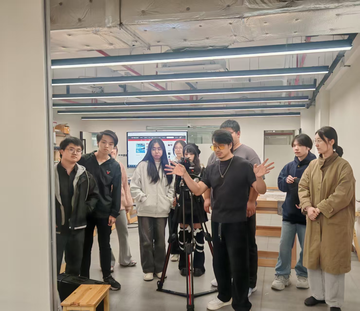 其次,他从短视频实战角度出发进行分镜头拍摄,使大家在课堂学习“推拉摇移跟”的镜头语言之余,从专业设备上更加直观地感受到行业工作的魅力。“不同的镜头语言,赋予拍摄对象丰富的象征意义”。生动的介绍引起了诸多同学的兴趣。