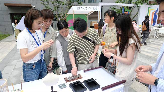 “墨印书魂”《四库全书》作为中国古代最大的丛书,承载着浩瀚的文化典籍。活动中,文物修复专业纸质方向的同学们按照文澜阁《四库全书》原版1:1复刻雕版,带领大家体验雕版印刷的工艺流程。