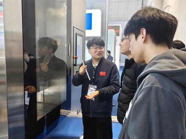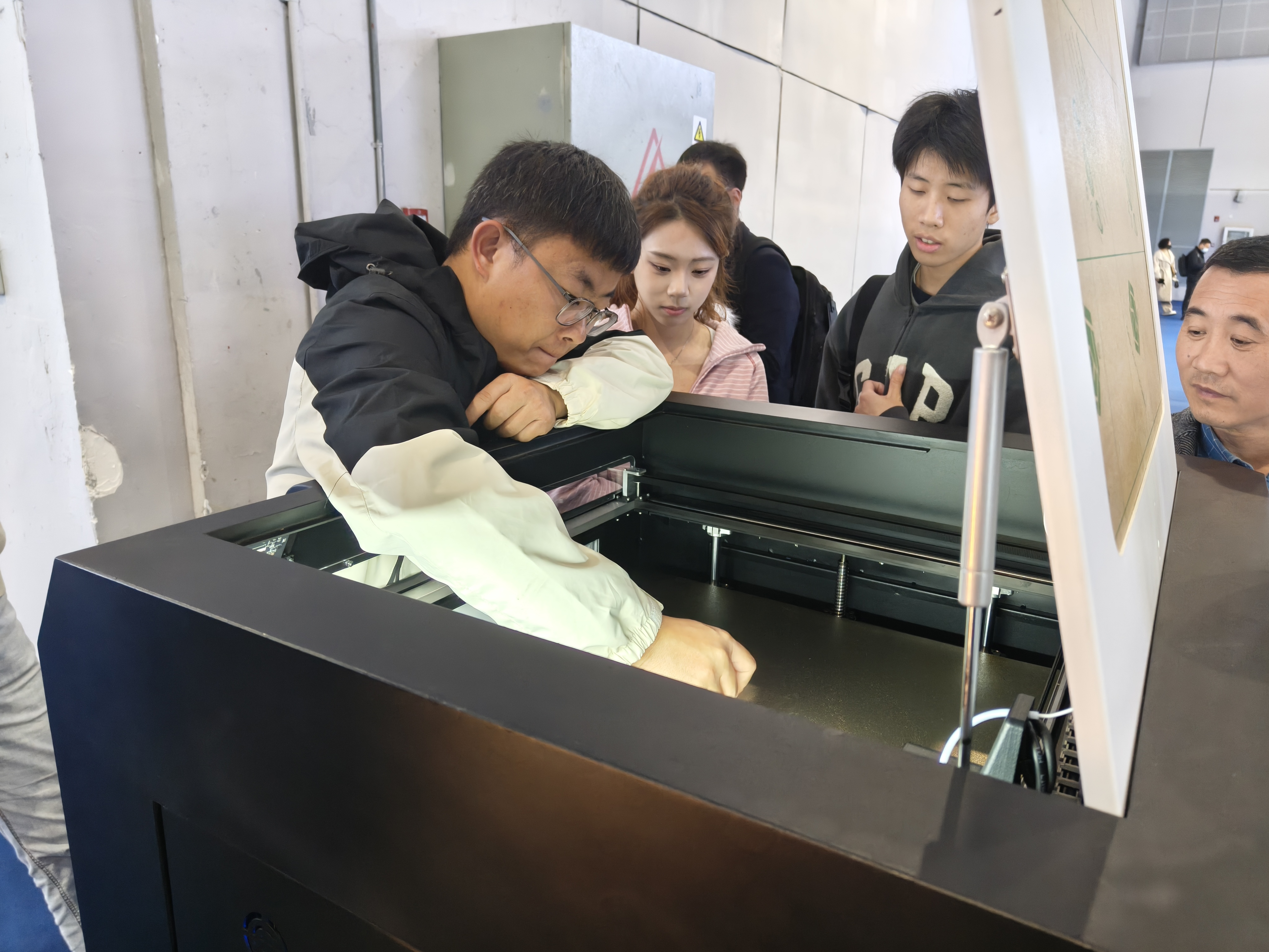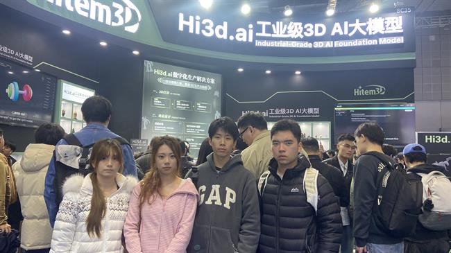 在展馆内,团队成员仔细观察设备运行方式,并就打印精度、材料适配等问题与技术人员交流。他们围在展台前观看“AI大模型”模型生成演示,注意到:新一代大模型对细分建模有着显著的提升——以往需要数小时调整的复杂曲面,现在几分钟即可完成。