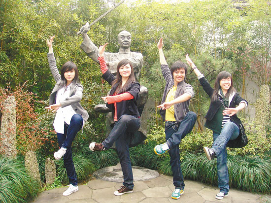 钱江晚报4月9日讯:清明是祭典先人的时节,浙江艺术职业学院学生日前寻访到金沙港盖叫天故居,膜拜这位曾在学校任教的前师先贤——京剧表演艺术家盖叫天。看着雕像摆的熟悉架势,学子们开始比画模仿“江南第一武生”的艺术风范。“浙江艺术职业学院德育社会实践基地”铜牌也第一次挂在盖叫天故居。