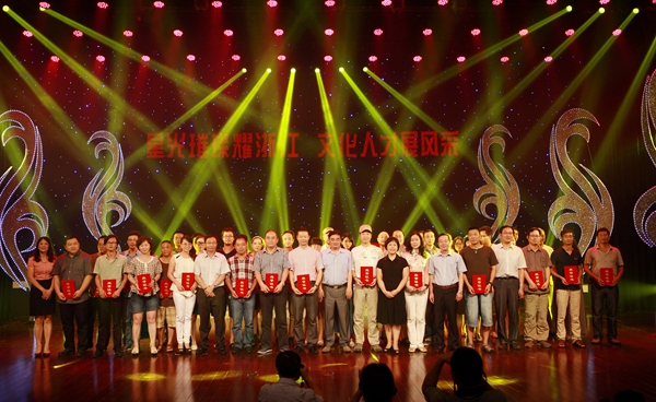 美术、书法、摄影、民间艺术、理论、文学类项目金奖 音乐、舞蹈、戏剧、曲艺、音乐创作、戏剧曲艺创作类项目金奖 集体奖 8月21日,浙江省文化馆业务干部才艺大赛颁奖晚会在萧山区文化中心世纪剧场举行。绚丽的舞台灯光下,来自全省各文化馆的优秀选手们表演了朗诵、独唱(民族、美声、流行)、舞蹈、小品、戏曲、器乐演奏及书画创作等精彩节目,满场观众的情绪被选手们投入的表演点燃,掌声四起,叫好声不断。省文化厅厅长金兴盛、副厅长柳河,中共杭州萧山区委常委、宣传部长叶建宏和副区长黄晓燕,省曲艺家协会会长翁仁康,以及省文化厅公共文化处及省文化馆的负责人出席了颁奖晚会。