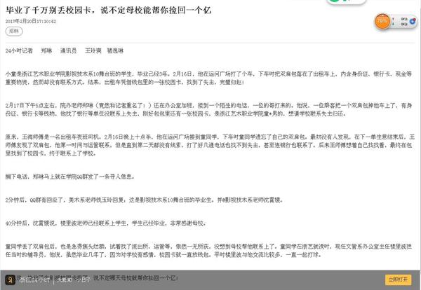 浙江24小时app讯:毕业了千万别丢校园卡,说不定母校能帮你捡回一个亿
