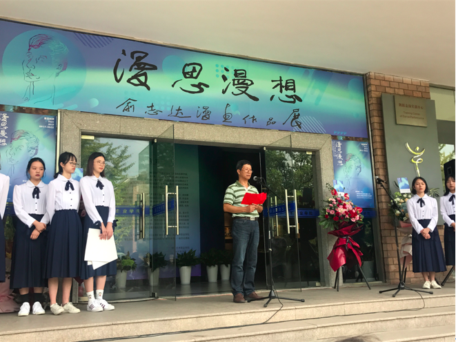作者俞志达致答谢词,并向浙江艺术职业学院美术系7位学生赠送作品。出席开幕式的有来自省教育厅老领导、省漫画界、新闻界的朋友、浙江艺术职业学院、杭州师范大学的师生代表,及作者亲朋漫友200余人。本次展览共展出作者上世纪八、九十年代创作的漫画作品近50件。