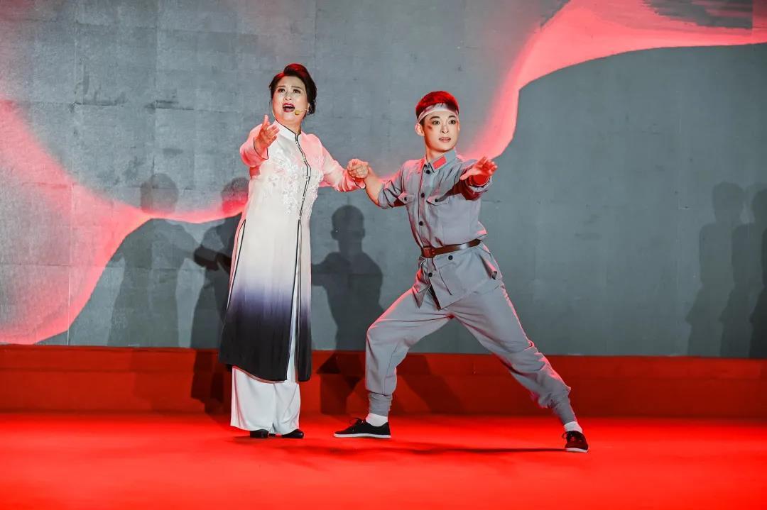 《妈妈教我一支歌》唱出了中华民族伟大复兴磅礴力量的来源,也唱出了新一代青年铭记中国共产党的丰功伟绩和对不屈不挠的奋斗精神的深刻理解和传承。浙江省朗诵协会会长刘忠虎和杭州电视台主持人杨莅共同朗诵了诗词《红船,红船》,小小的红船开启了跨世纪的伟大航程。由浙艺戏曲学院副院长周伟君演唱的越剧新唱《七律·长征》则一改传统越剧温柔婉转的气质,唱出了中国共产党和中国工农红军克服艰难险阻到达陕北的战斗豪情。诗朗诵《卜算子·咏梅》《七律·人民解放军占领南京》、越剧新唱《为女民兵题照》、男女二重唱《不忘初心》等节目精彩呈现,师生们用饱满的情绪讴歌了中国共产党成立百年来的伟大历程和不朽精神。