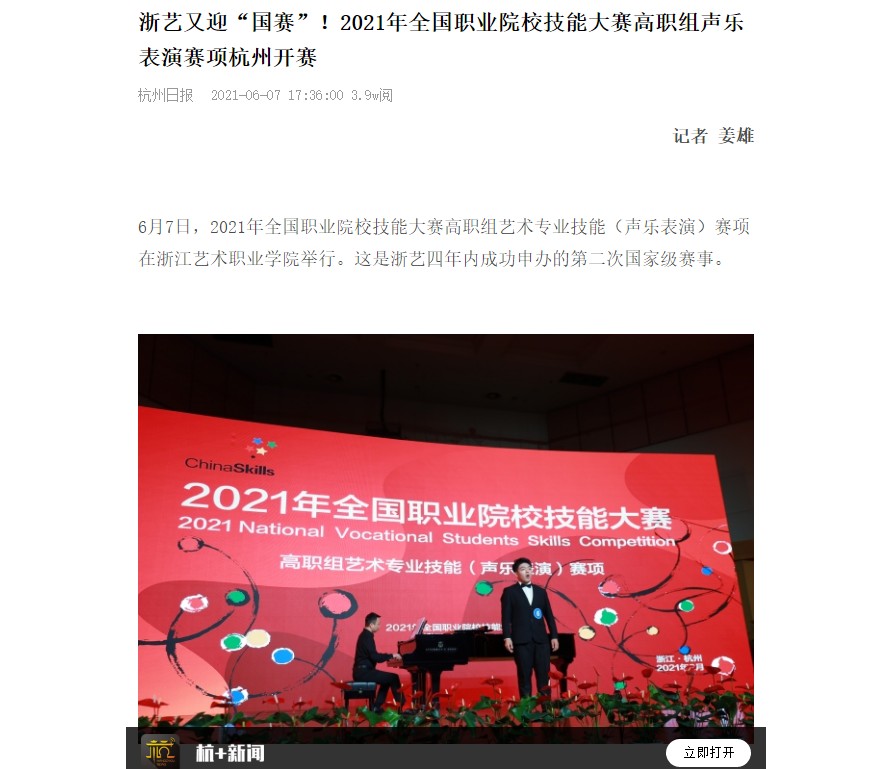 杭州日报:浙艺又迎“国赛”!2021年全国职业院校技能大赛高职组声乐表演赛项杭州开赛