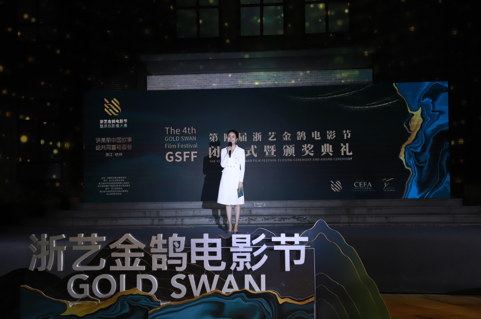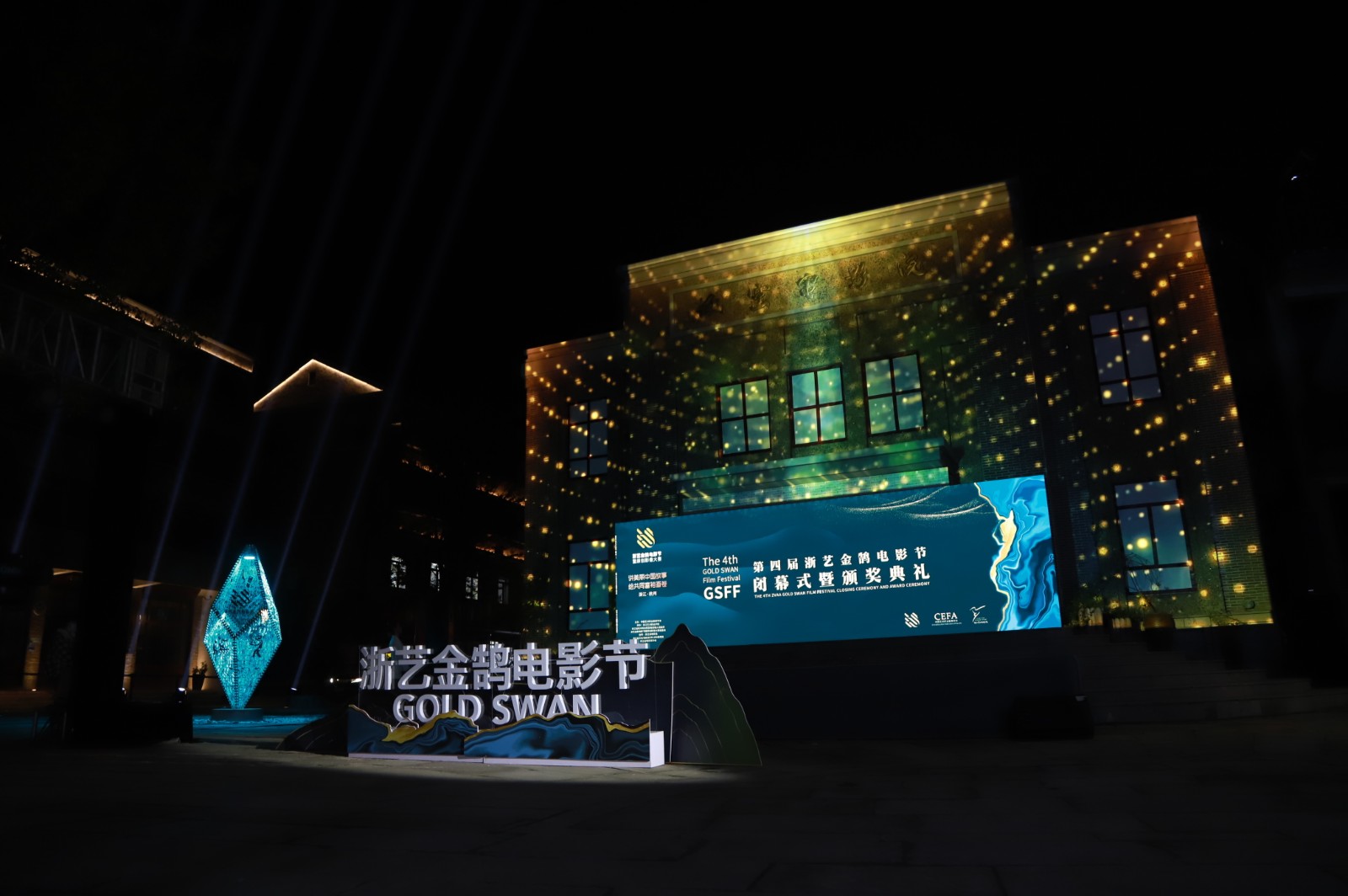 11月27日晚,由中国艺术职业教育学会主办,浙江艺术职业学院、浙江省杭州市余杭区瓶窑镇人民政府承办的第四届浙艺金鹄电影节闭幕式暨颁奖典礼在杭州瓶窑老街电影院广场举行。