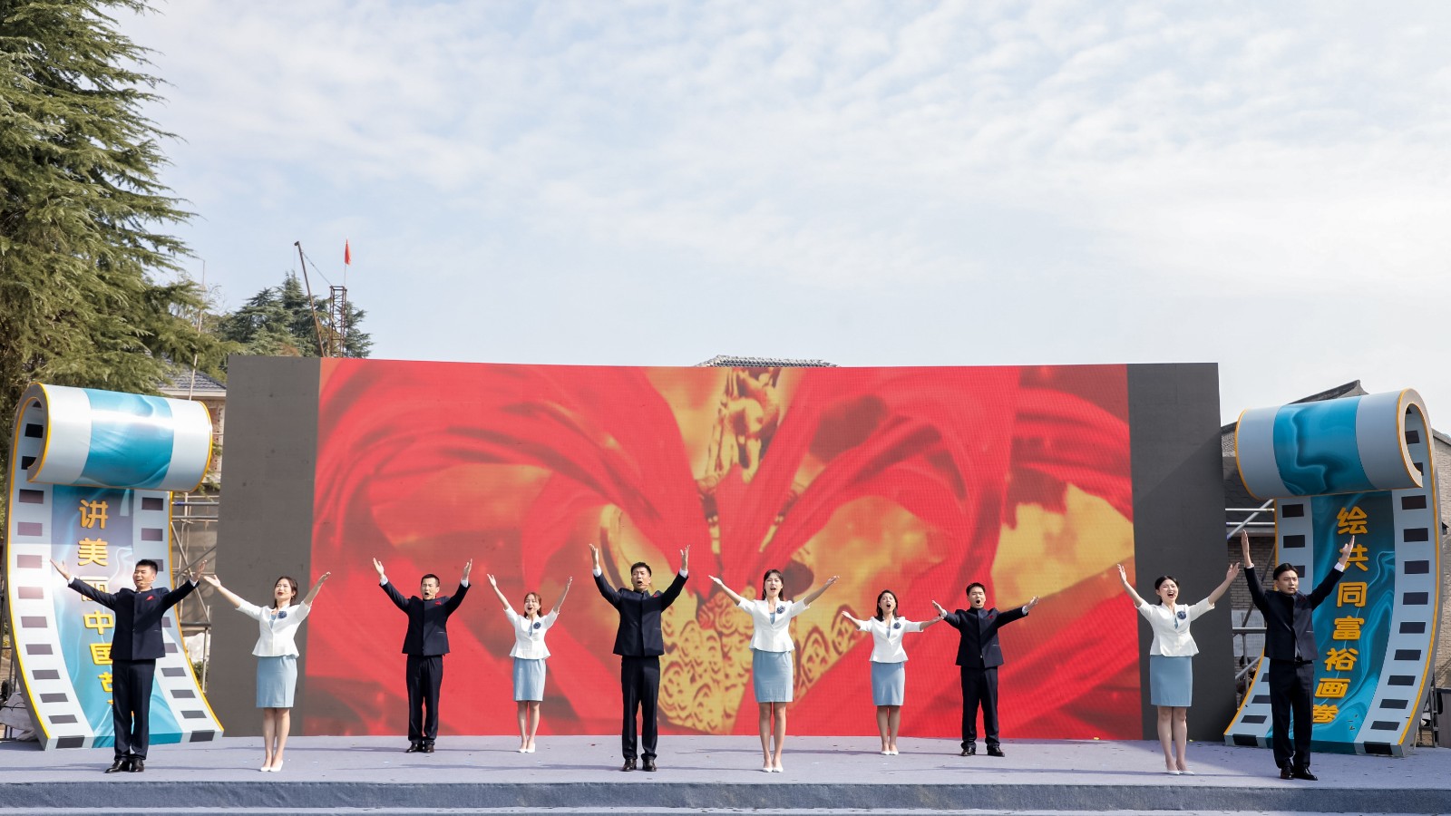 启动仪式后,浙江艺术职业学院音乐系、戏剧系师生为瓶窑老街送上经典电影主题作品展演,古筝重奏《沙漠玫瑰》、小组唱《木叶吹啊吹》、群舞《喜鹊喳喳喳》、诗朗诵《我的祖国》等精彩节目吸引了大量当地群众和游客前来观看,还有国家级非遗项目“小热昏”展演、戏曲表演、民俗踩街等一系列传统民间文化艺术展演,现场气氛热烈,瓶窑镇的文化热度持续升温,再一次让瓶窑古镇因为金鹄电影节而璀璨生辉。
