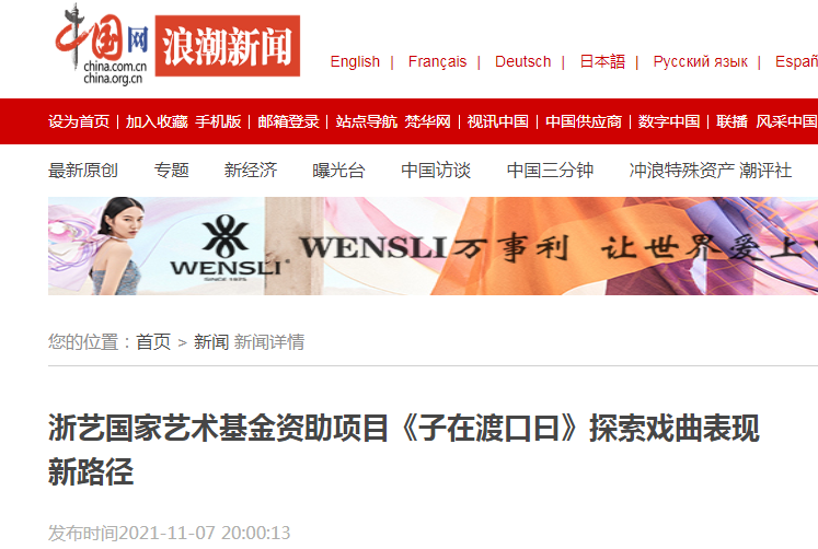 中国网:浙艺国家艺术基金资助项目《子在渡口曰》探索戏曲表现新路径