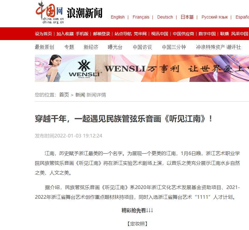 中国网浪潮新闻穿越千年,一起遇见民族管弦乐音画《听见江南》!