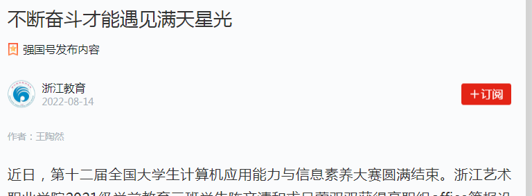 近日,第十二届全国大学生计算机应用能力与信息素养大赛圆满结束。浙江艺术职业学院2021级学前教育三班学生陈文清和求吕蓥双双获得高职组office简报设计赛项一等奖。