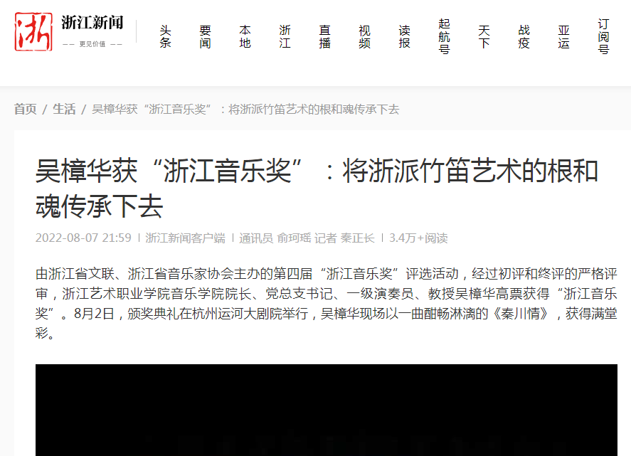 浙江日报:吴樟华获“浙江音乐奖”:将浙派竹笛艺术的根和魂传承下去