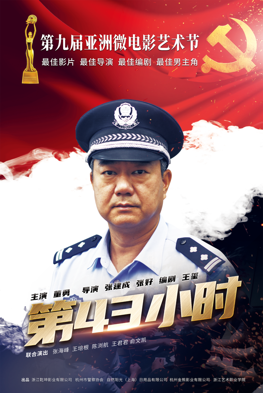 9月15日晚,“第九届亚洲微电影艺术节”颁奖典礼在云南省临沧市举行。杭州市公安局创作的微电影《第43小时》获得最佳影片、最佳导演、最佳编剧、最佳男主角4项大奖。影视表演艺术家董勇扮演的金所长,以其精湛的演技赢得本届艺术节唯一最佳男主角这一殊荣。
