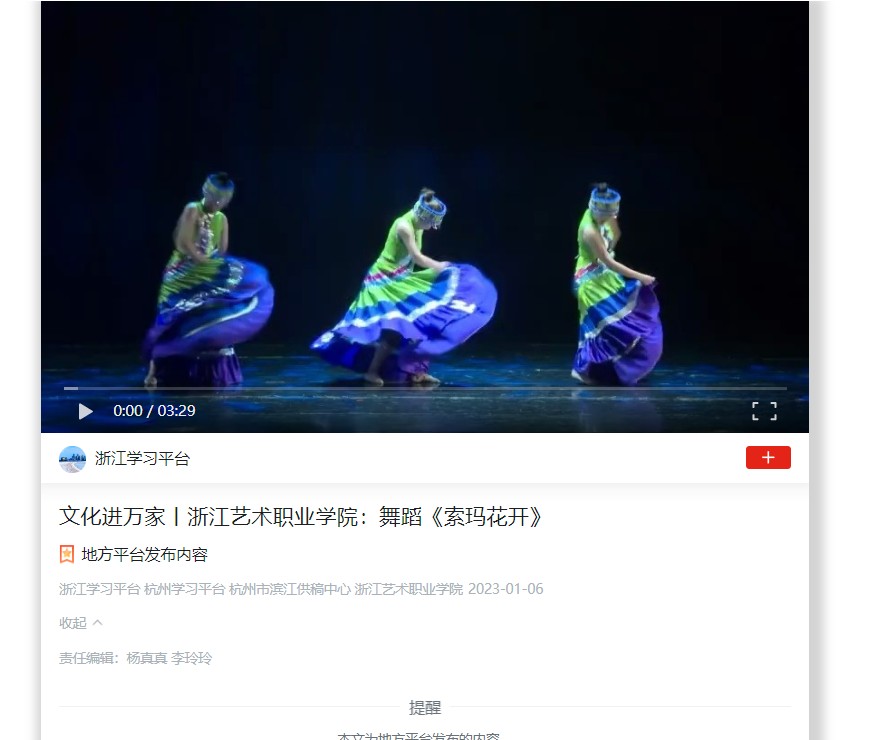 学习强国浙江平台:文化进万家丨浙江艺术职业学院:舞蹈《索玛花开》