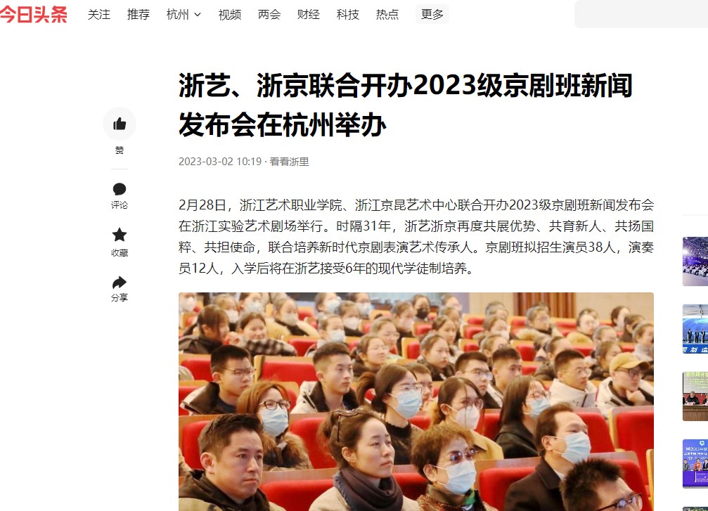 今日头条:浙艺、浙京联合开办2023级京剧班新闻发布会在杭州举办