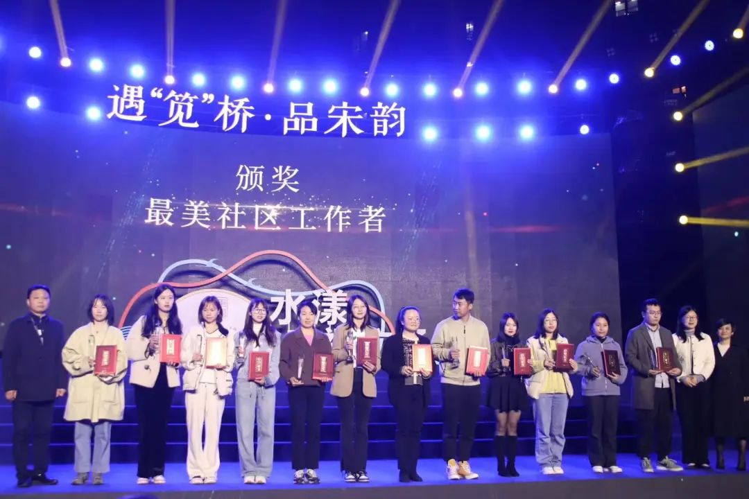当晚,由浙艺学生与笕桥飞扬舞蹈队、东港水墨兰亭模特队倾力合作的文艺演出精彩纷呈。歌曲《我和南宋有个约会》让观众沉浸式体验宋人的风雅趣味;舞蹈《桃花晚月》与歌曲《月满西楼》串搭,让观众感受月长圆人长久的幸福美满生活;舞蹈串烧《宋引时韵》以国风音乐、服饰搭配现代舞元素,传递出宋韵文化的时尚性与多元化。原创音乐快板《放歌新笕桥》节奏轻快,情绪洋溢,引领大家领略笕桥现在、畅想笕桥未来。晚会在全场大合唱《遇“笕”》的歌声中进入尾声,预示着文化底蕴丰厚的笕桥,在时代的发展更迭中始终以昂扬奋斗之姿勇立潮头。晚会现场还表彰了本次文化节中涌现出的一批优秀代表,包括文化节宣讲比赛、摄影比赛的获奖人员、笕桥街道最美社区工作者、十佳文化志愿者等。