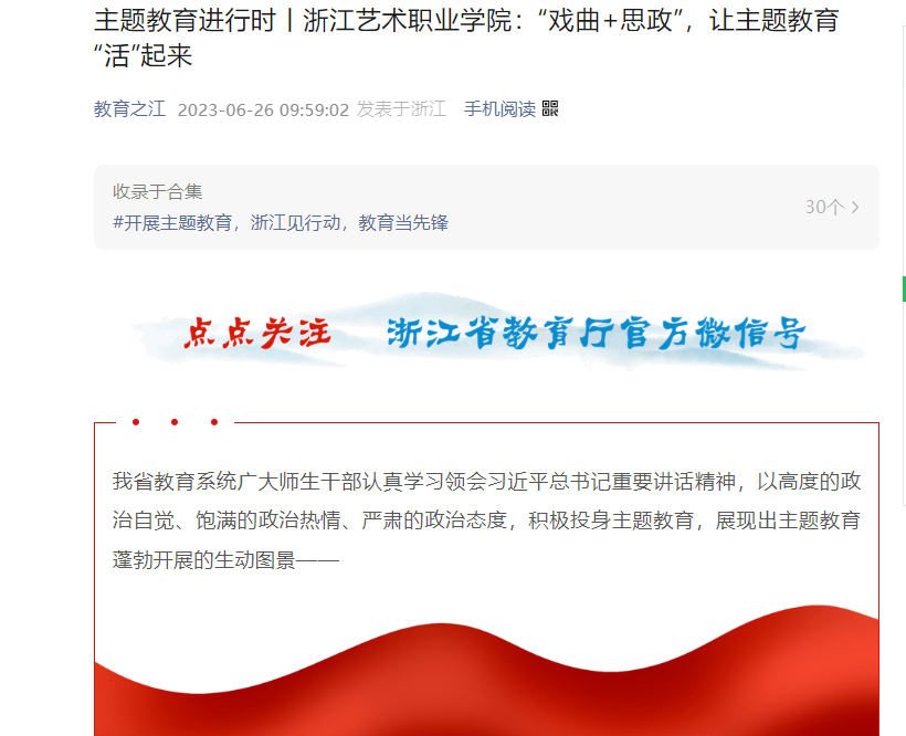 教育之江:主题教育进行时丨浙江艺术职业学院:“戏曲+思政”,让主题教育“活”起来