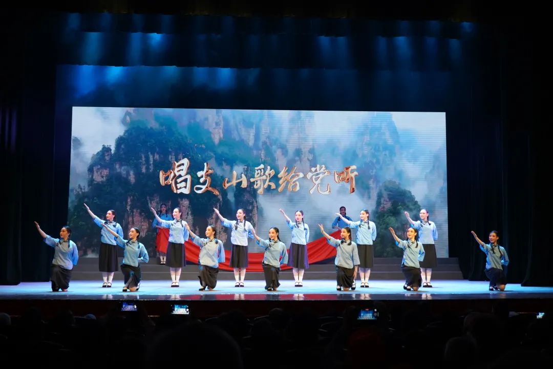 演出现场,浙艺戏曲学院2019级越剧小百花班33朵年仅15、16岁的越剧小花,以青春之美展现了戏曲艺术的动人魅力。“唱支山歌给党听,我把党来比母亲”,越剧开篇《唱支山歌给党听》以传统戏曲艺术的形式,融时代精神和现代表达于其中,抒发了当代艺术学子对党的热爱之情,焕发了新一代戏曲传承人守正创新的时代风采。折子戏《穆桂英挂帅·辕门外》《胭脂·慎思》等节目以爱国、廉政等为主题,用戏曲的艺术表现形式,让中华民族传统美德与社会主义核心价值观深植人心、引发共鸣。节目《薪火相传》以师生同台展示的形式,生动诠释了该专业师生在戏曲教育道路上的弦耕不辍、薪火相传。