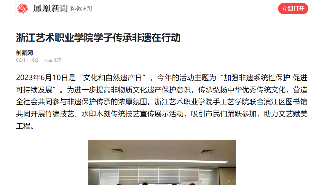 凤凰新闻:浙江艺术职业学院学子传承非遗在行动